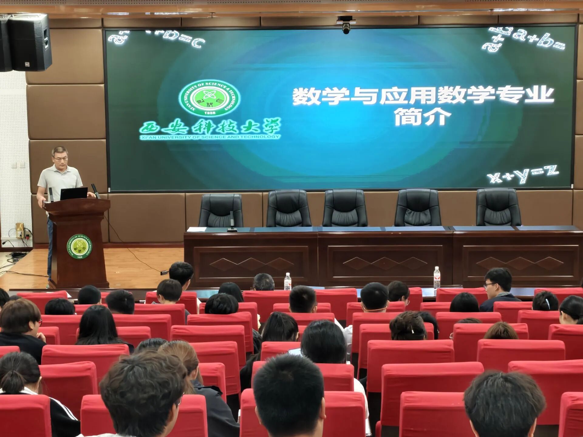数学系主任王彪代表数学系作专业介绍。他系统梳理了数学学科的发展历程、团队队伍、研究方向与未来趋势,生动阐述了数学作为基础学科的重要地位及其在交叉领域的广泛应用,激发了同学们强烈的专业兴趣和学习热情。