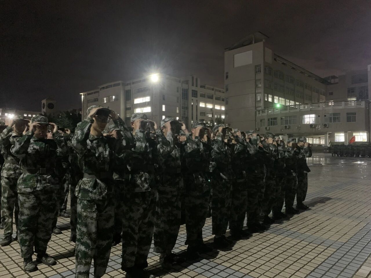 秋夜微凉,星月为灯。当白天的暑气渐渐消散,夜晚的训练场更显庄严,同学们身着整齐迷彩,在教官清晰有力的口令中动作划一、步伐铿锵,展现出别样的飒爽英姿。
