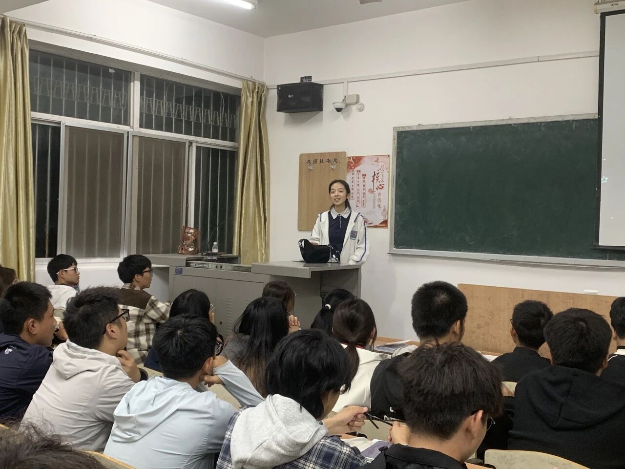 王沂廷则以“老员工活分享”为主题,从更为贴近同学们的视角出发,娓娓道来其入学以来的心路历程与切身感悟。她结合自身在专业学习、课外活动、人际交往等方面的具体事例,生动描绘了老员工活的多样性与可能性。王沂廷特别分享了如何克服初入大学的迷茫与挑战,如何发掘专业兴趣,以及如何在与师长、同学的交流中不断成长。她的分享亲切自然,情感真挚,有效缓解了同学们的焦虑情绪,增强了他们迎接老员工活的信心。