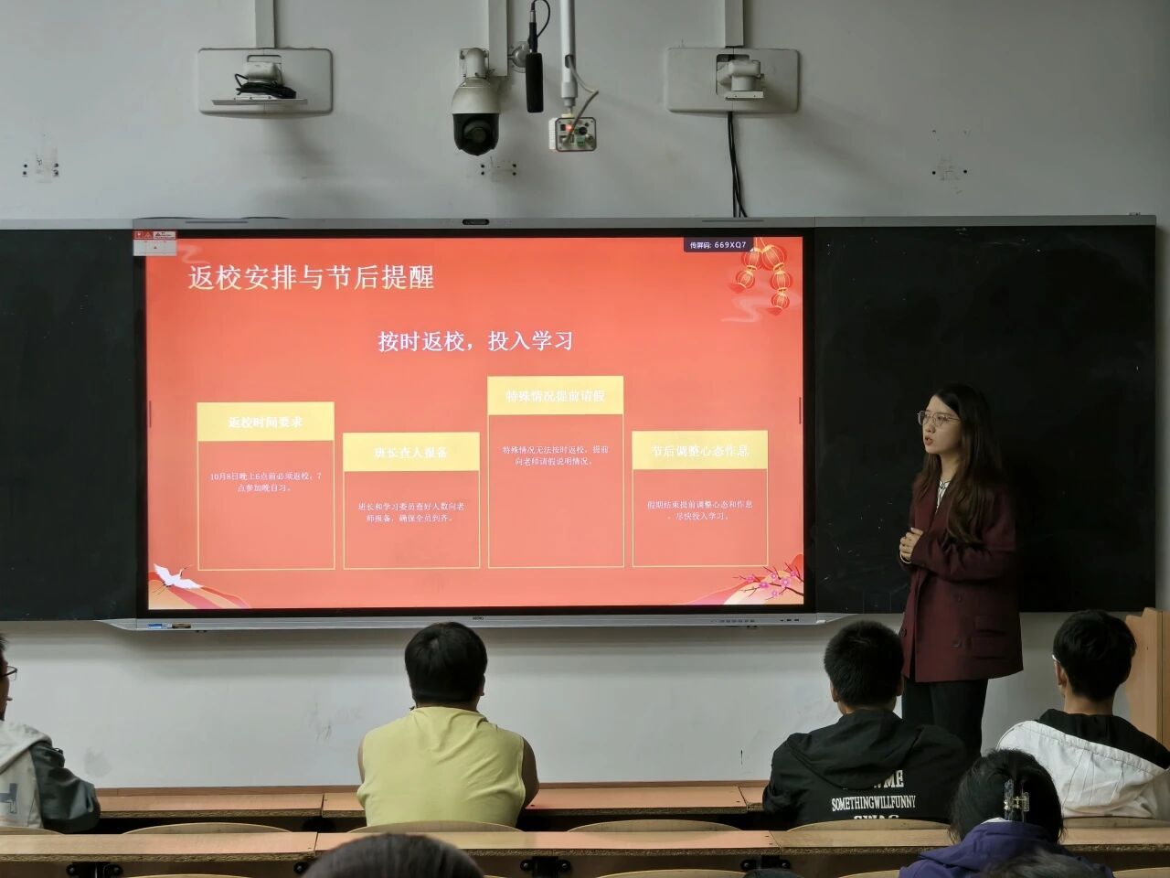 段佳还就假期期间的日常管理规范提出了明确要求,希望同学们合理安排假期生活,保持规律作息,积极参与有益身心的活动,确保按时、平安返校。她强调,遇到任何突发情况或困难,要第一时间与辅导员和家长取得联系,寻求帮助。