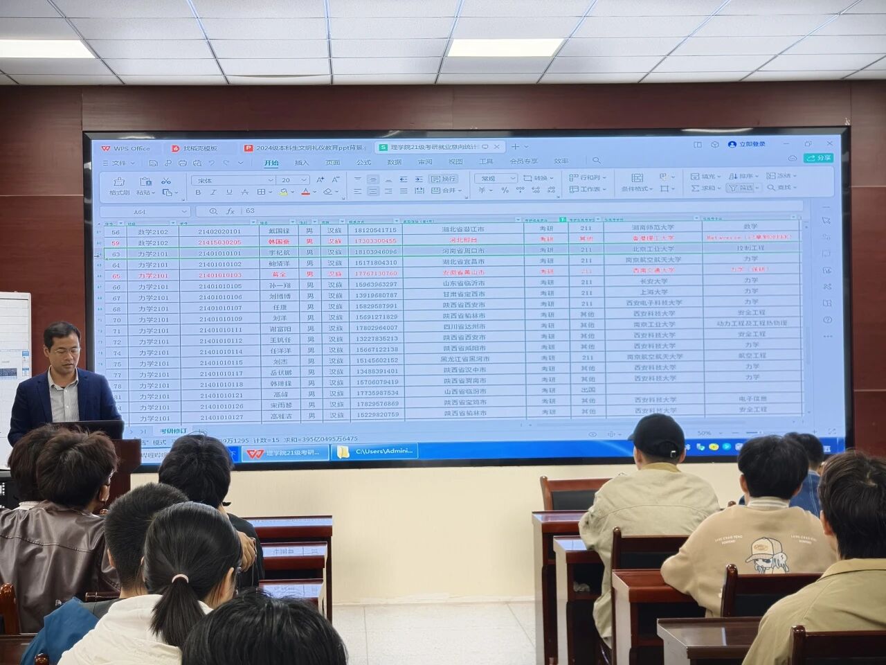 为帮助2022级本科生科学规划考研目标,明确报考方向,9月28日及29日,谈球吧于220会议室分专业连续举办了两场研究生报考指导分析会。会议由2022级辅导侯斌刚主讲,2022级全体本科生参会。