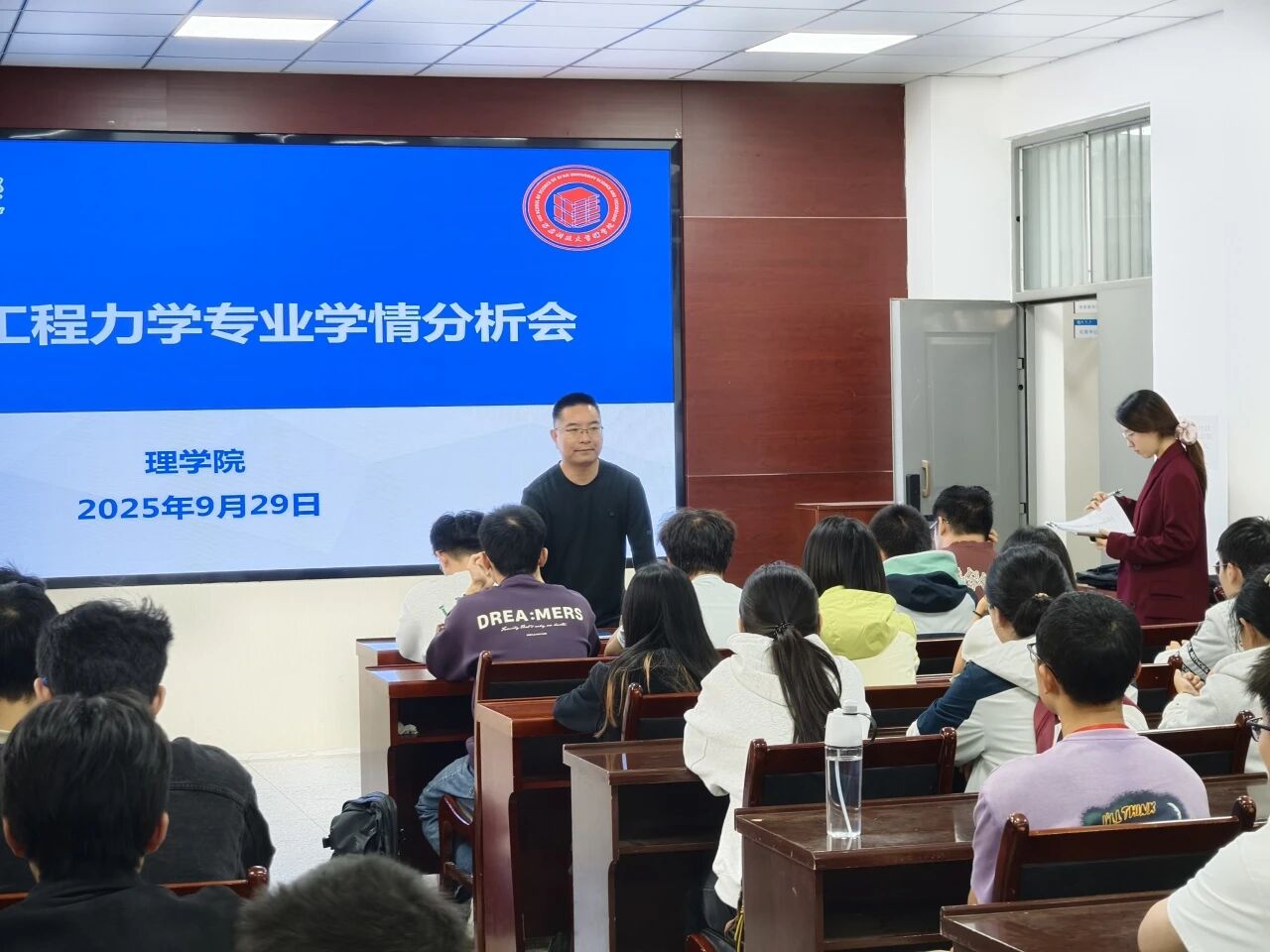 段佳对陈伟伯所讲的学风建设举措进行了具体安排。她结合近期课堂考勤与宿舍检查的实际情况,对个别旷课、宿舍卫生整改不力的案例进行了通报,并要求相关同学立即改正。她进一步细化了请假操作的注意事项,提醒同学们务必遵守规章制度,共同维护积极向上的年级风貌。