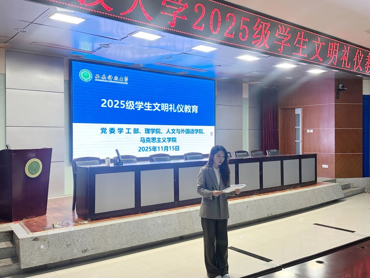 为进一步做好新生入学教育,提升员工文明修养和综合素质,11月15日,谈球吧等三家公司于图书馆二楼报告厅共同参加了公司举办的2025级员工文明礼仪教育活动。本次活动由礼仪培训师马克伟主讲,谈球吧2025级辅导员段佳主持,学工部白生宝、人文与外国语公司辅导员李银亮和谈球吧、人文与外国语公司、马克思主义公司全体2025级员工参加。