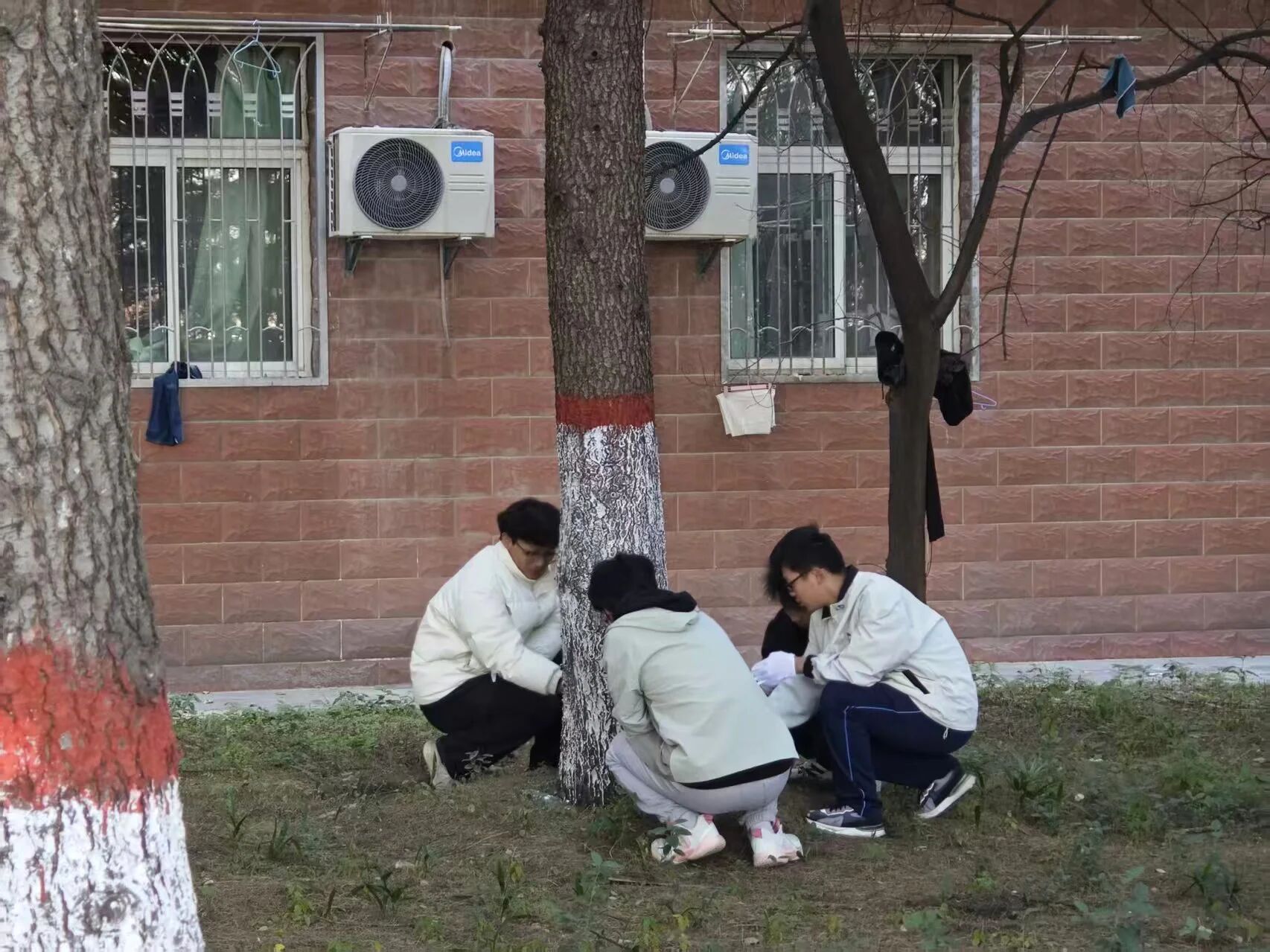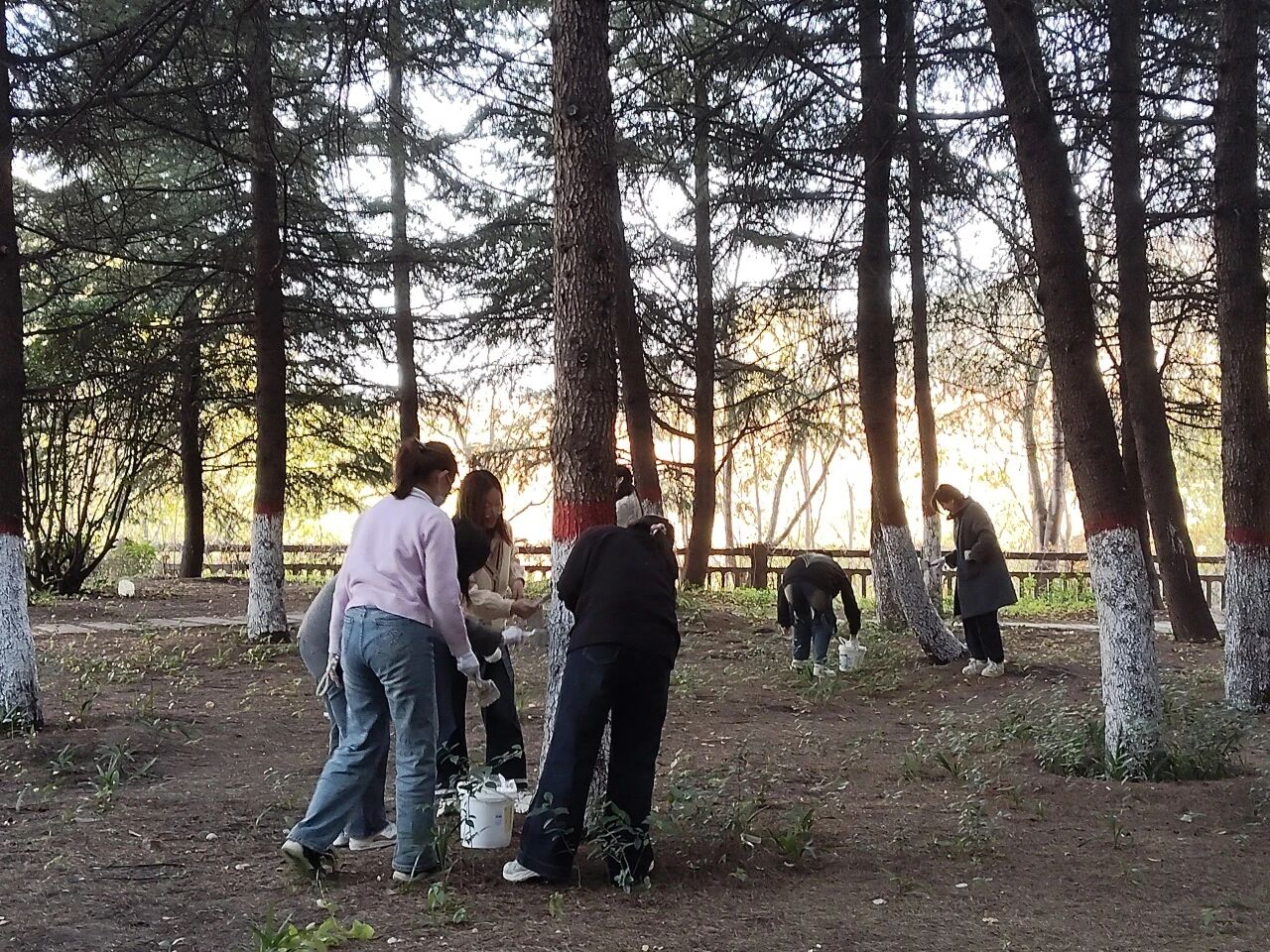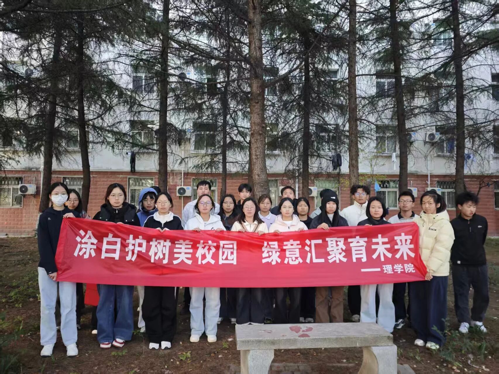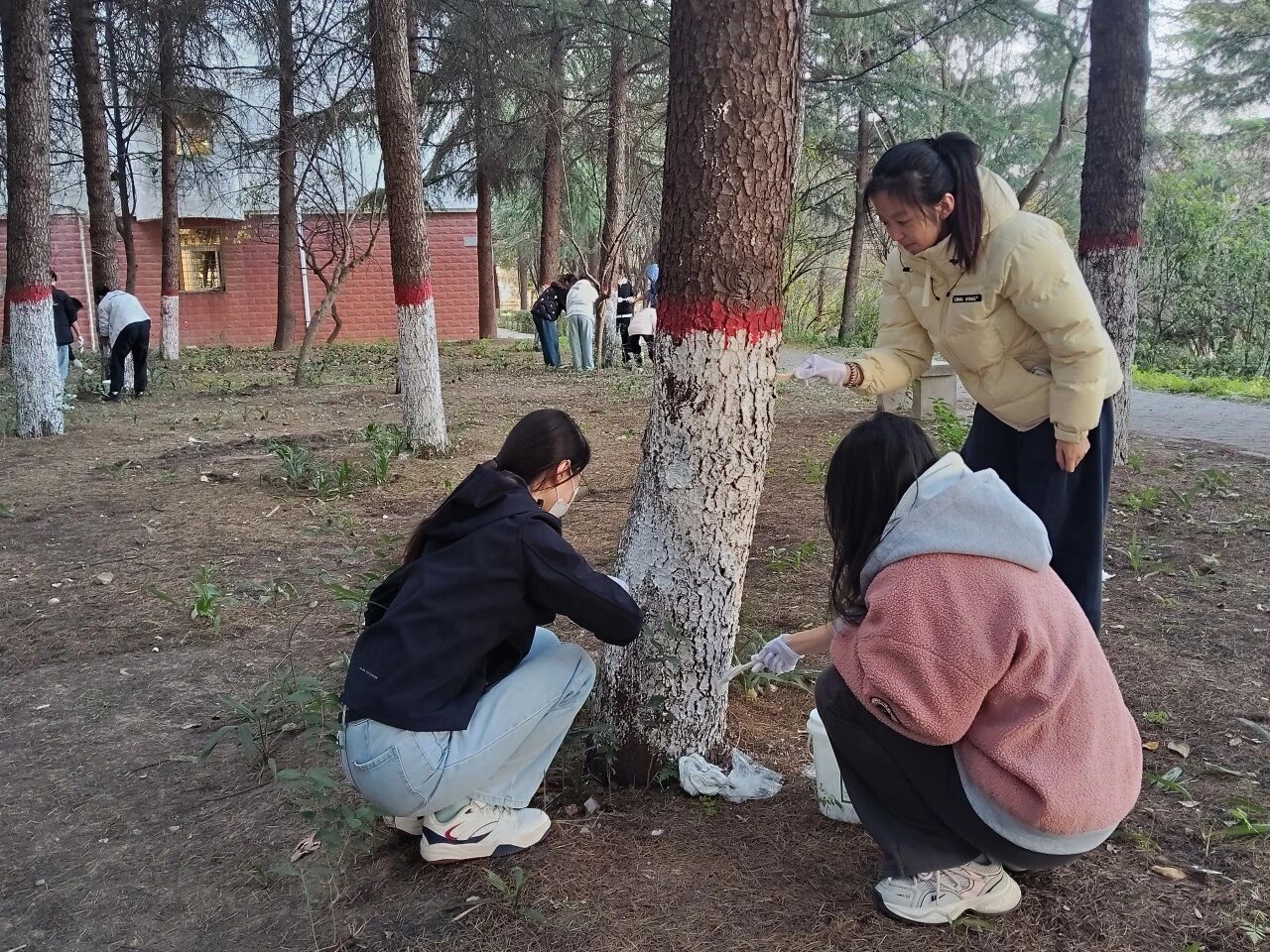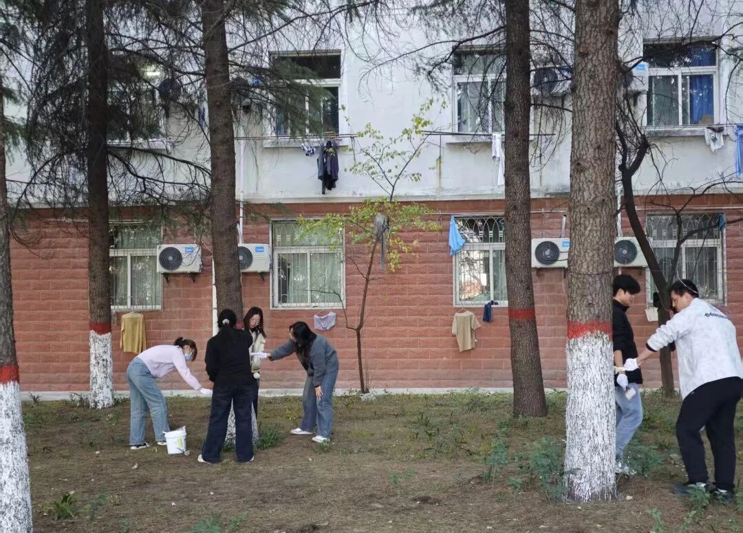 在望曦路南北两侧,同学们热情高涨,分工协作。有人负责标定基准线,确保涂白高度统一整齐;有人仔细清理树皮上的灰尘与虫卵;有人则专注地挥动刷子,将雪白的涂料均匀地粉刷至树干。现场一派热火朝天的劳动景象,成为冬日校园里一道温暖的风景。
