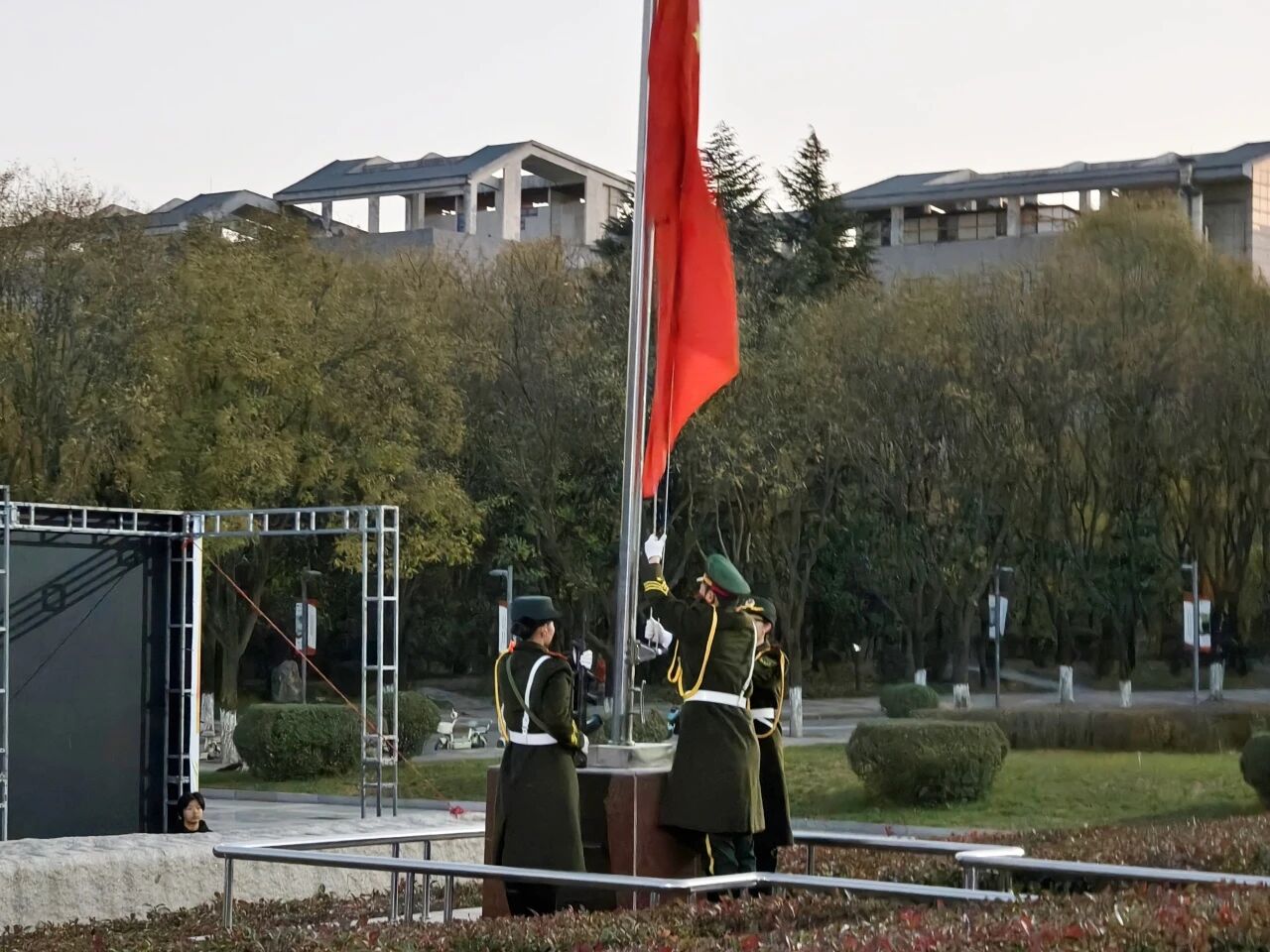 本次主题升旗仪式将爱国主义教育、法治教育与学风建设相结合,进一步增强了青年员工的国家观念、宪法意识与纪律自觉,激励同学们将崇高理想融入日常实践,以青春之力践行法治精神,以优良学风担当时代使命。