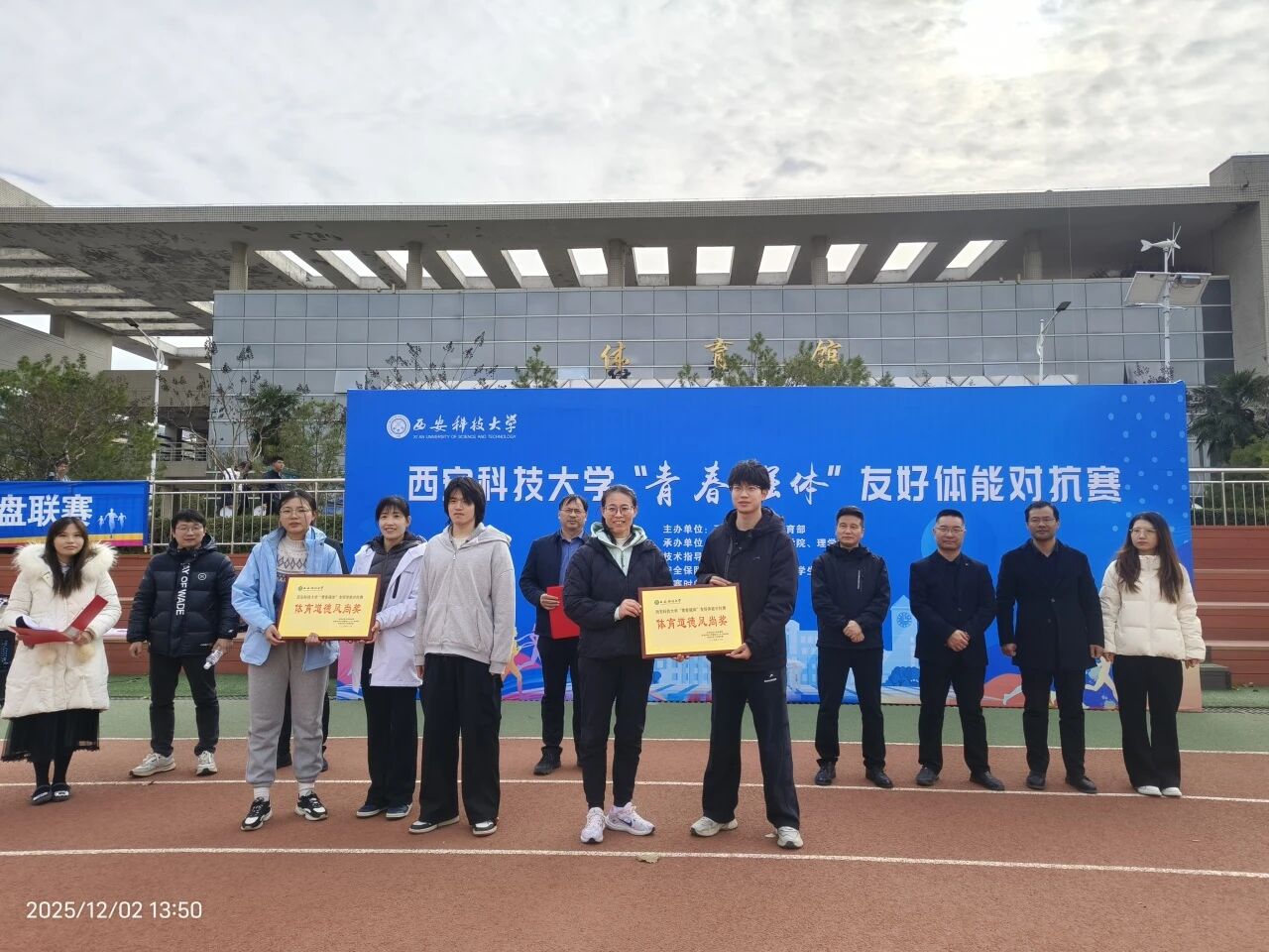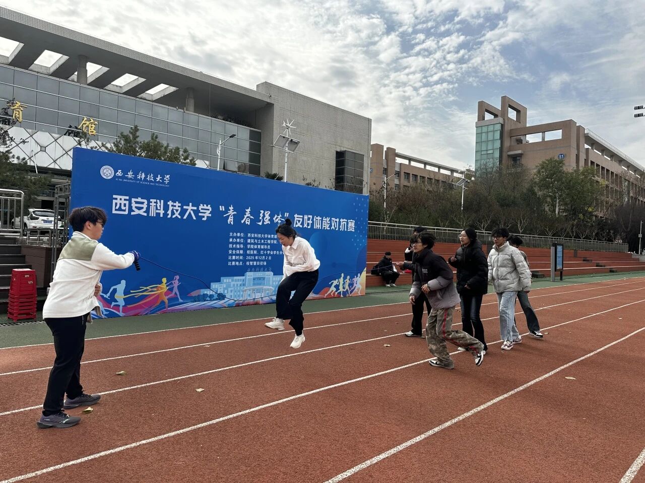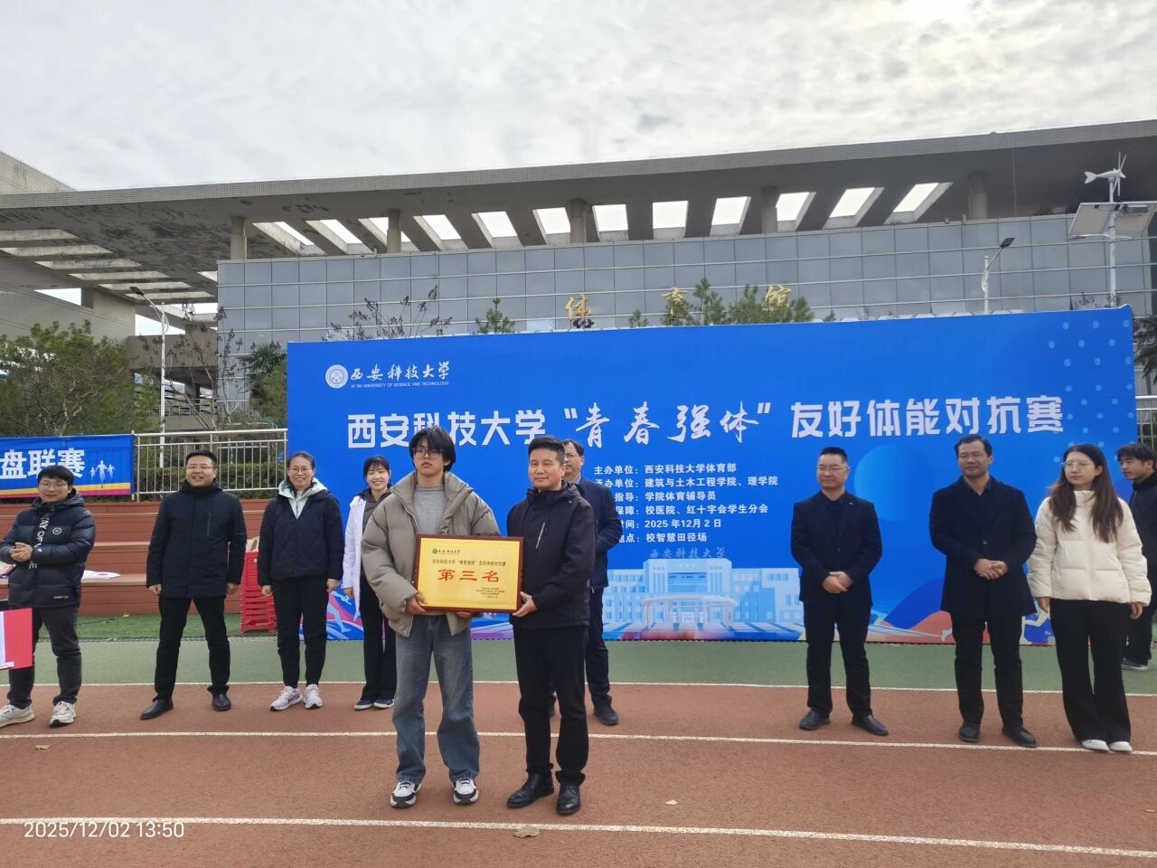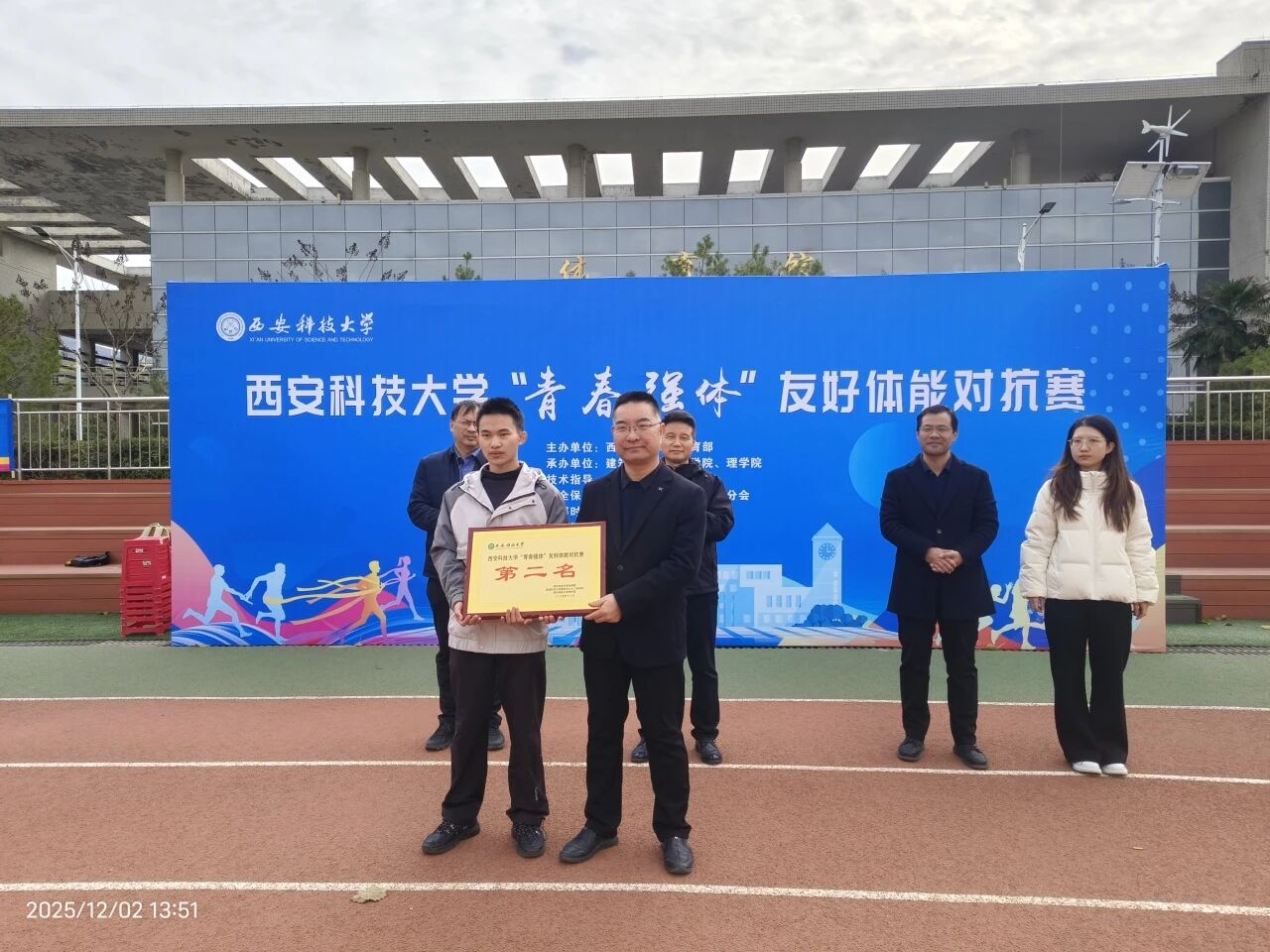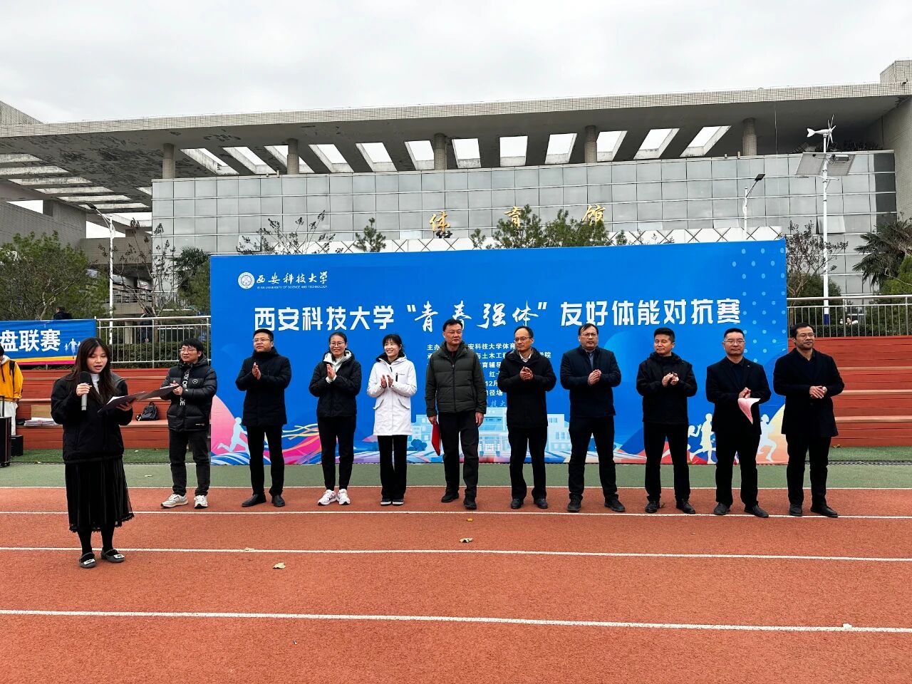 为深入贯彻“五育并举”育人理念,积极响应“一院一运动”工作部署,锤炼员工意志,展现团结拼搏、奋发向上的精神风貌。12月2日,由谈球吧网页版登录入口体育部主办,建工公司与谈球吧联合承办的“青春强体”友好体能对抗赛在骊山校园智慧田径场成功举行。体育部主任王华、建工公司党委书记尚长春、理公司党委书记杨勇、建工公司党委副书记吕勤勇、理公司党委副书记陈伟伯等出席活动。建工公司体育辅导员米春娟、谈球吧体育辅导员张艳青以及两院辅导员共同参加。