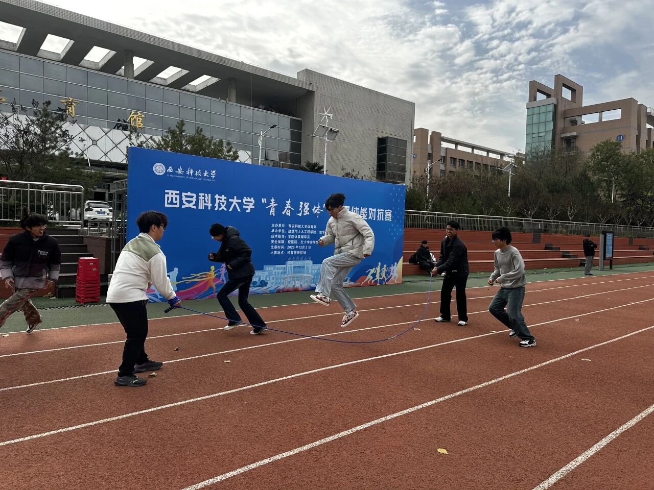 对抗赛设有4×250米混合接力、引体向上/俯卧撑极限赛、团队跳绳、立定跳远团体赛及平板支撑挑战赛五个项目,全面考验员工的体能、耐力与协作能力。赛场上,建工学子展现出坚韧务实的作风,理学健儿则发挥出冷静专注的特长,双方在竞争中彼此尊重、在协作中共同进步,展现出良好的体育风尚。