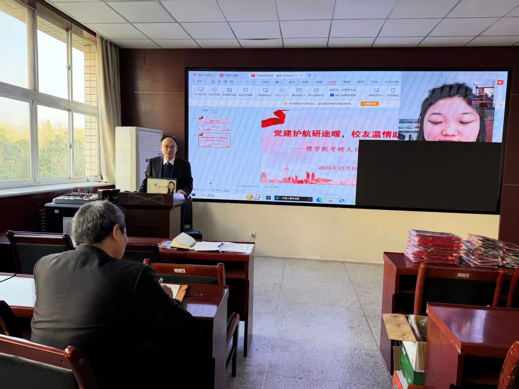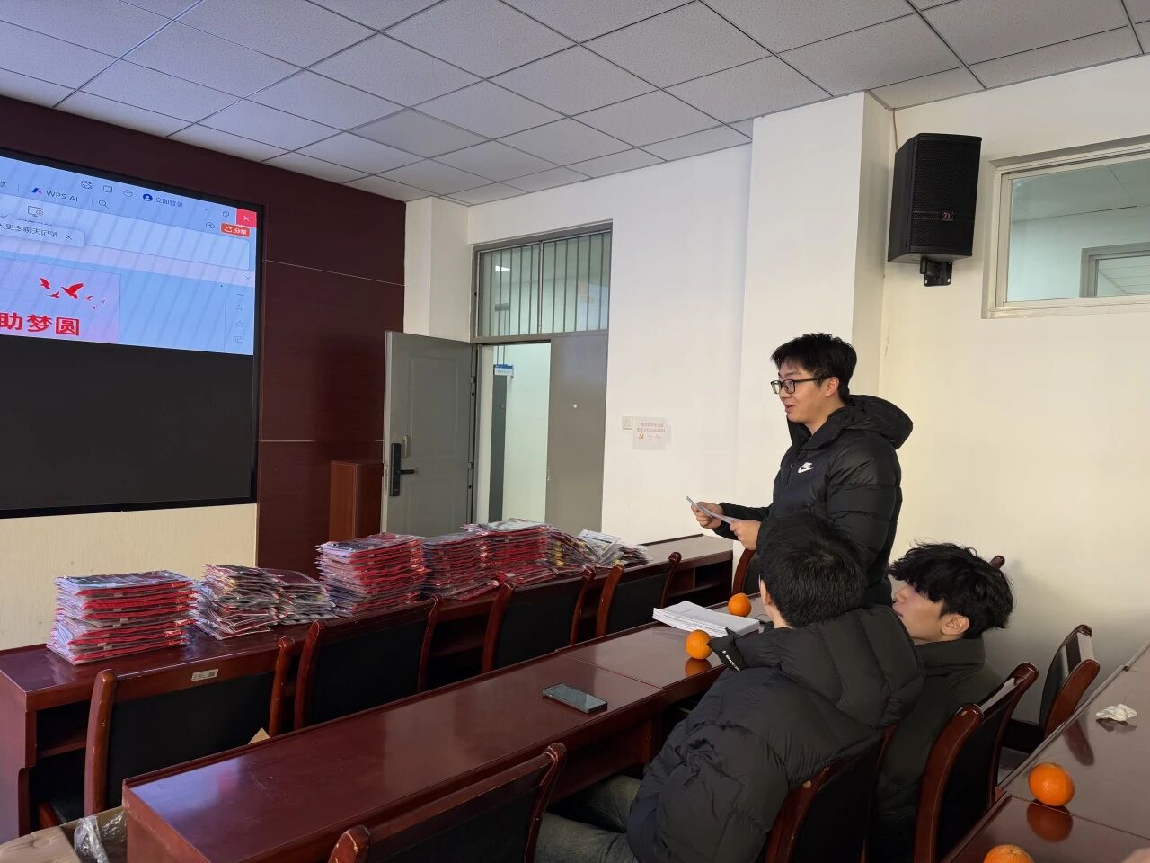 随后,郑思莹分享了自身的考研心得。她特意为学弟学妹们从江西寄来寓意“心想事成”的赣南脐橙,以表达牵挂与支持,鼓励大家坚定信心、沉稳应考,坚持到底,将这份温情转化为前行的力量。