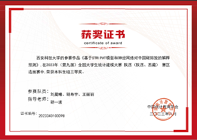 2024-2025学年智育及综测排名均位列专业第一(1/64),通过老员工英语四级、六级考试。积极参与各类竞赛,获第十九届“挑战杯”全国老员工课外学术科技作品竞赛国家级特等奖,机器人与人工智能大赛国家级二等奖、全国老员工数学建模大赛本科生组陕西赛区一等奖、中国国际老员工创新大赛省级银奖、西北地区老员工物理实验竞赛二等奖等多项奖项。担任班级学习委员认真履行职责,助力班级获评“先进班集体”等荣誉称号,个人获评"优秀共青团干部"等荣誉称号。