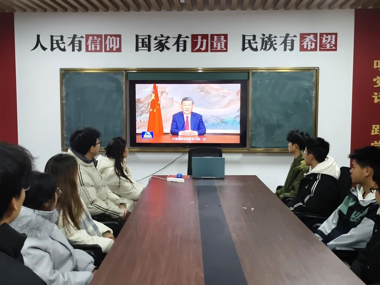 活动中,同学们聚精会神聆听贺词,认真记录要点。习近平主席的贺词回顾了过去一年国家发展取得的辉煌成就,描绘了未来的宏伟蓝图,话语温暖人心,充满催人奋进的力量。同学们对国家发展进步感到自豪,对擘画的美好未来充满信心。