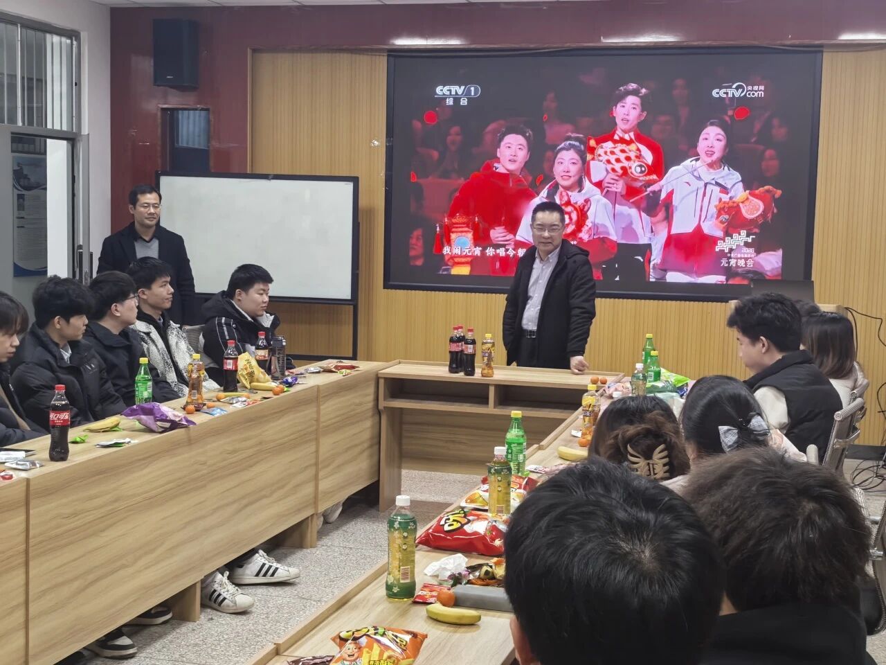 研究生慰问活动于公司208会议室举行。公司党委副书记陈伟伯、学工办主任侯斌刚与同学们欢聚一堂,共同观看元宵晚会,在欢声笑语中感受传统节日的文化魅力。公司为同学们精心准备了零食、水果等节日慰问品,现场气氛轻松愉悦。