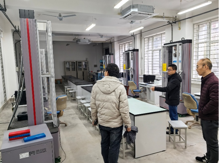 交流期间,曹书文主任详细介绍了西安建筑科技大学力学实验室的建设历程、教学改革成效及特色发展路径,分享了实验室在课程体系优化、教学模式创新等方面的探索实践与宝贵经验。双方围绕教学课时优化、课程内容模块化设计、跨学科实验项目开发等议题展开深入研讨,重点聚焦人工智能技术在实验数据采集、分析及虚拟仿真实验建设中的应用路径交换了意见。曹主任展示了该校自主编写的实验力学教材,系统阐述了教材在“理论-实践-创新”三位一体培养理念下的编写思路、内容架构及后续迭代完善计划,为公司力学类实验教材建设提供了重要参考。在实地参观环节,曹主任带领公司教师深入实验教学一线,近距离观摩了力学实验课堂教学场景,详细演示了多媒体教学工具、智能实验设备的创新应用流程,并就实验内容设计、设备高效运维、安全风险防控等实务问题进行了现场答疑。
