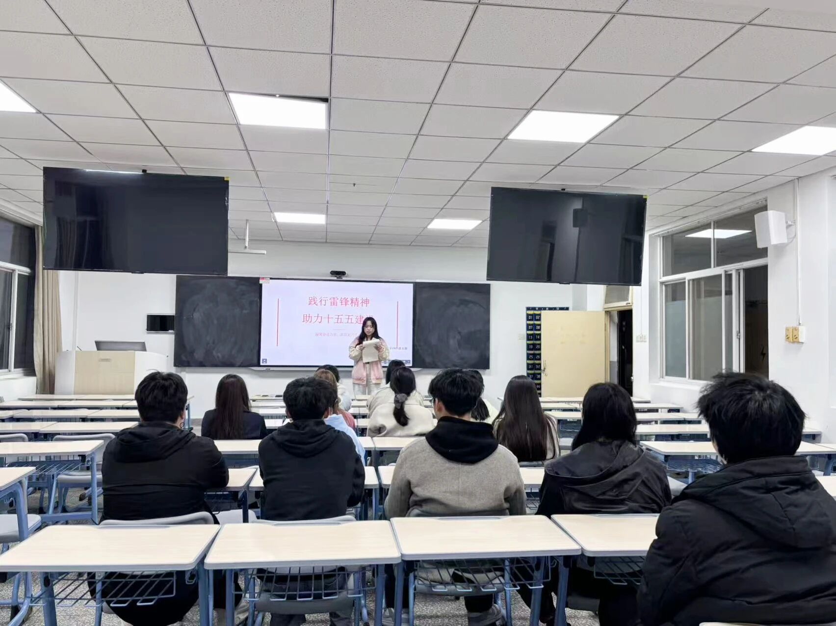 白雅薇首先带领同学们回顾了雷锋同志的光辉事迹,阐述了雷锋精神“服务人民、助人为乐”的奉献本质与“干一行爱一行、专一行精一行”的敬业精神在新时代的宝贵价值。她表示,在“十五五”新征程开启之际,传承和弘扬雷锋精神,对于激励广大青年坚定信念、刻苦学习、投身实践具有重要的现实意义。